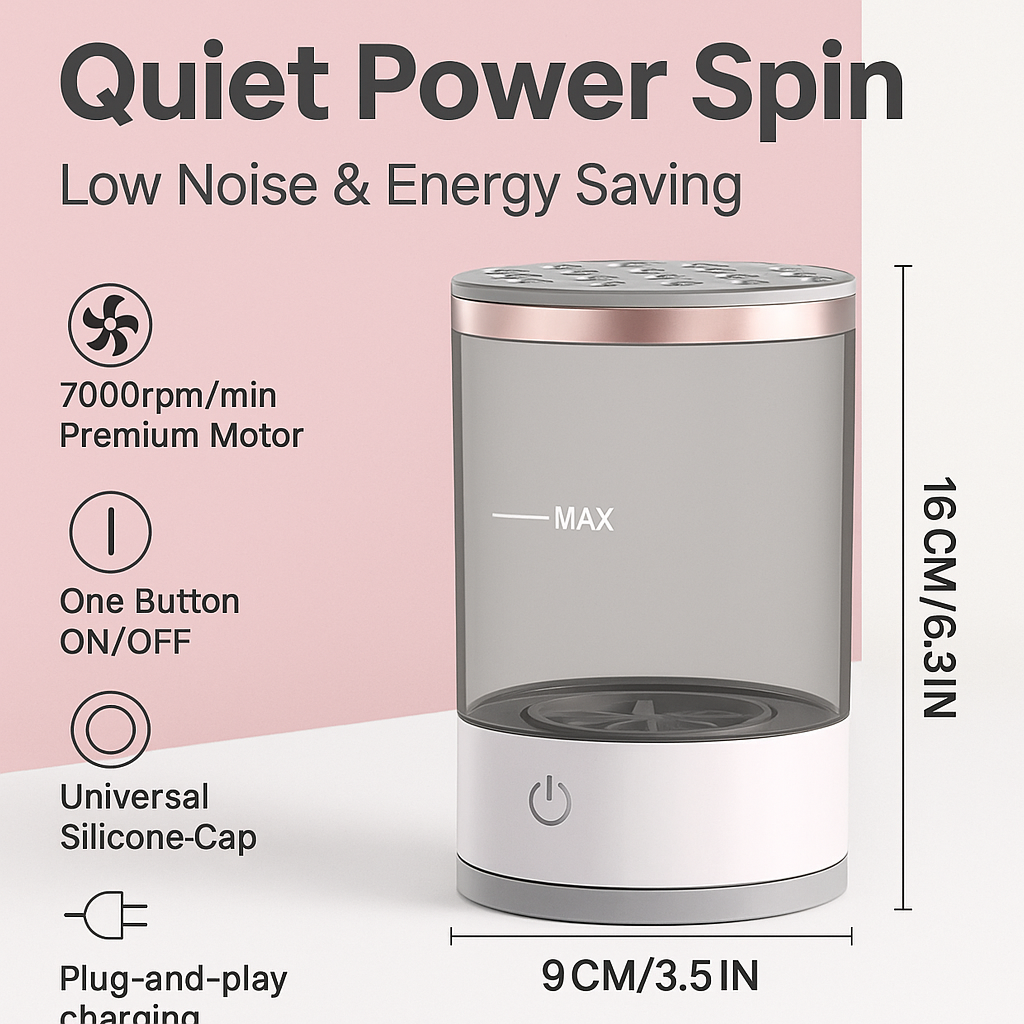 The BellaClean offers a professional and efficient way to deep-clean brushes, maintaining hygiene and extending their lifespan. Its motorized spinning feature thoroughly removes makeup residue and dirt, while the quick-drying process saves time between uses. Suitable for various brush sizes, this device ensures a complete clean without damaging bristles, making it an essential tool for makeup artists and enthusiasts seeking precision and cleanliness in their routine.